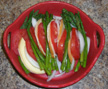 PROVOLONE ASPARAGUS SALAD Light and refreshing layered salad with slices of sweet onion, provolone cheese and beefsteak tomatoes, with spears of steamed asparagus. |